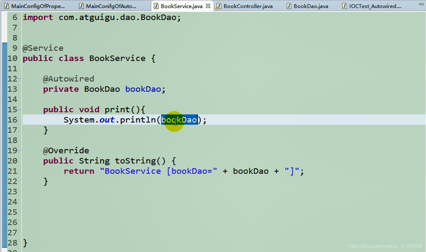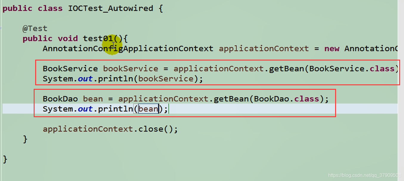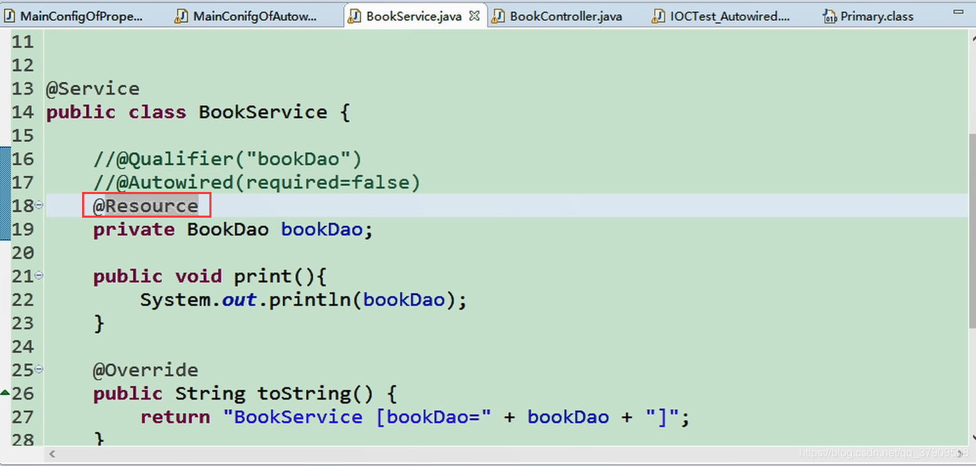 @Resource:功能和@Autowire一样,但是使用的话,其默认id使用的是bookDao(变量名)