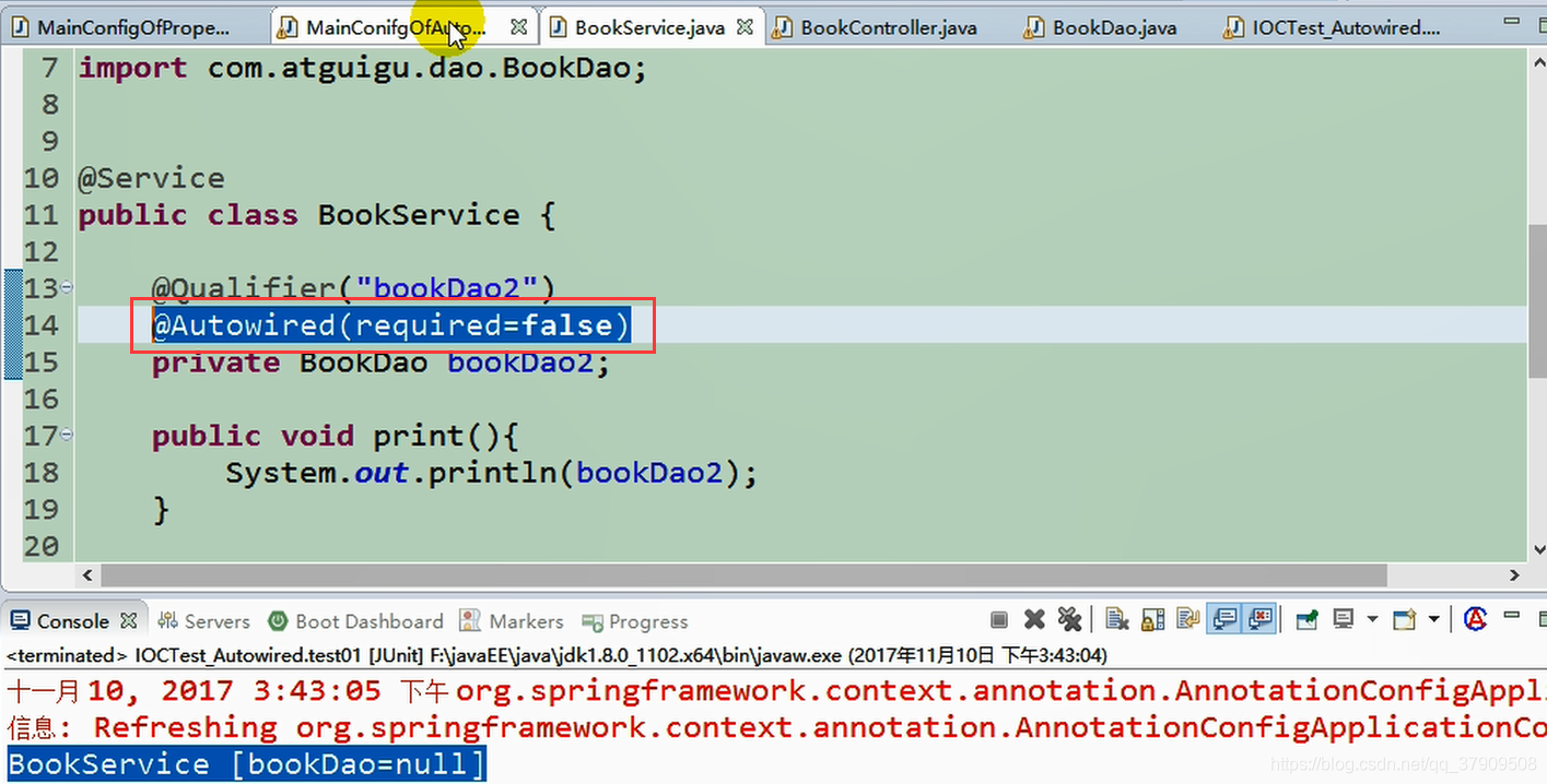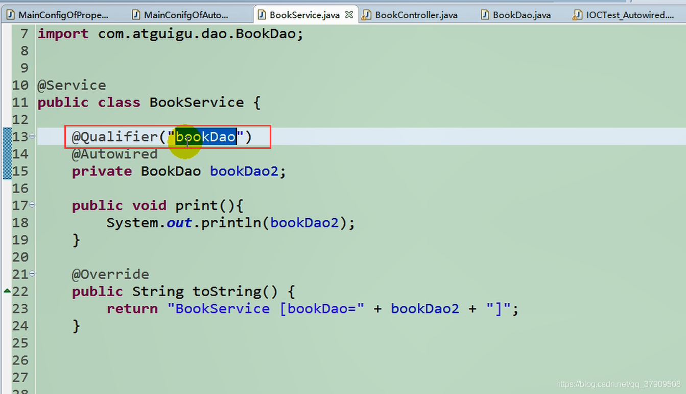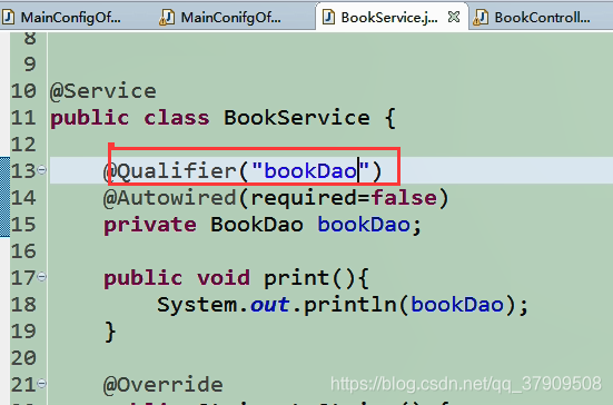 不过在上面的基础上明确指定使用@Qualifier(),那就选择@Qualifier()中的
