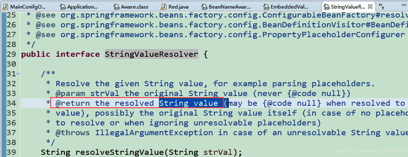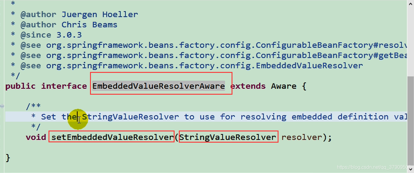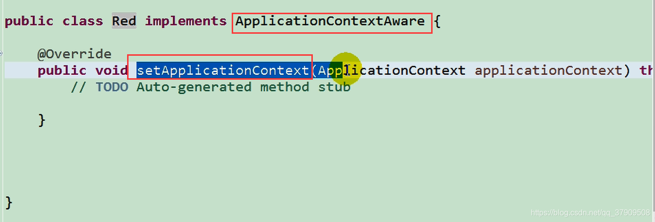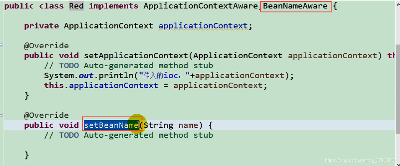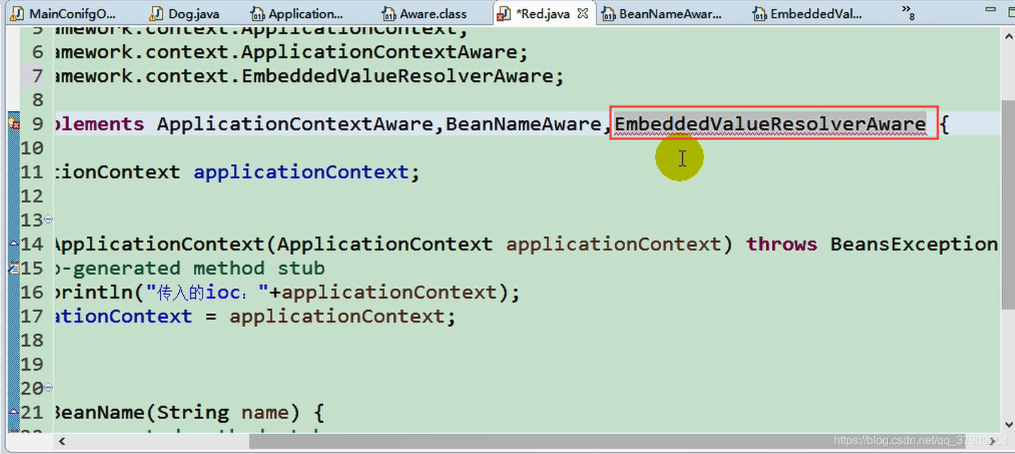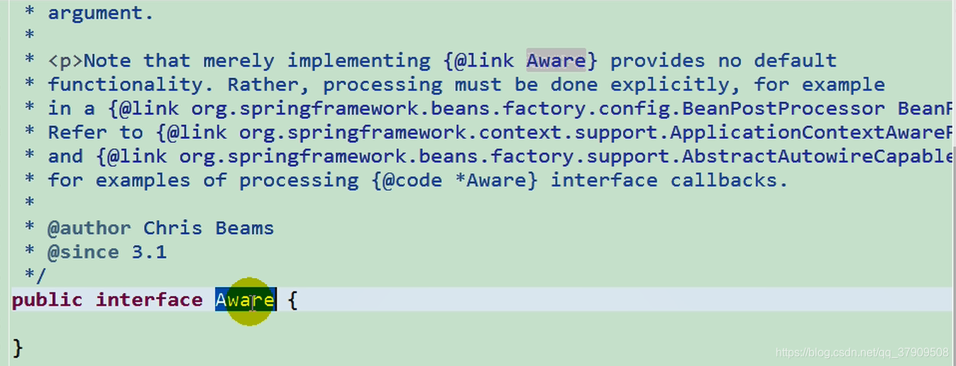 Aware接口:在实现了该相应接口之后就会在初始化的时候调用相应的方法。
